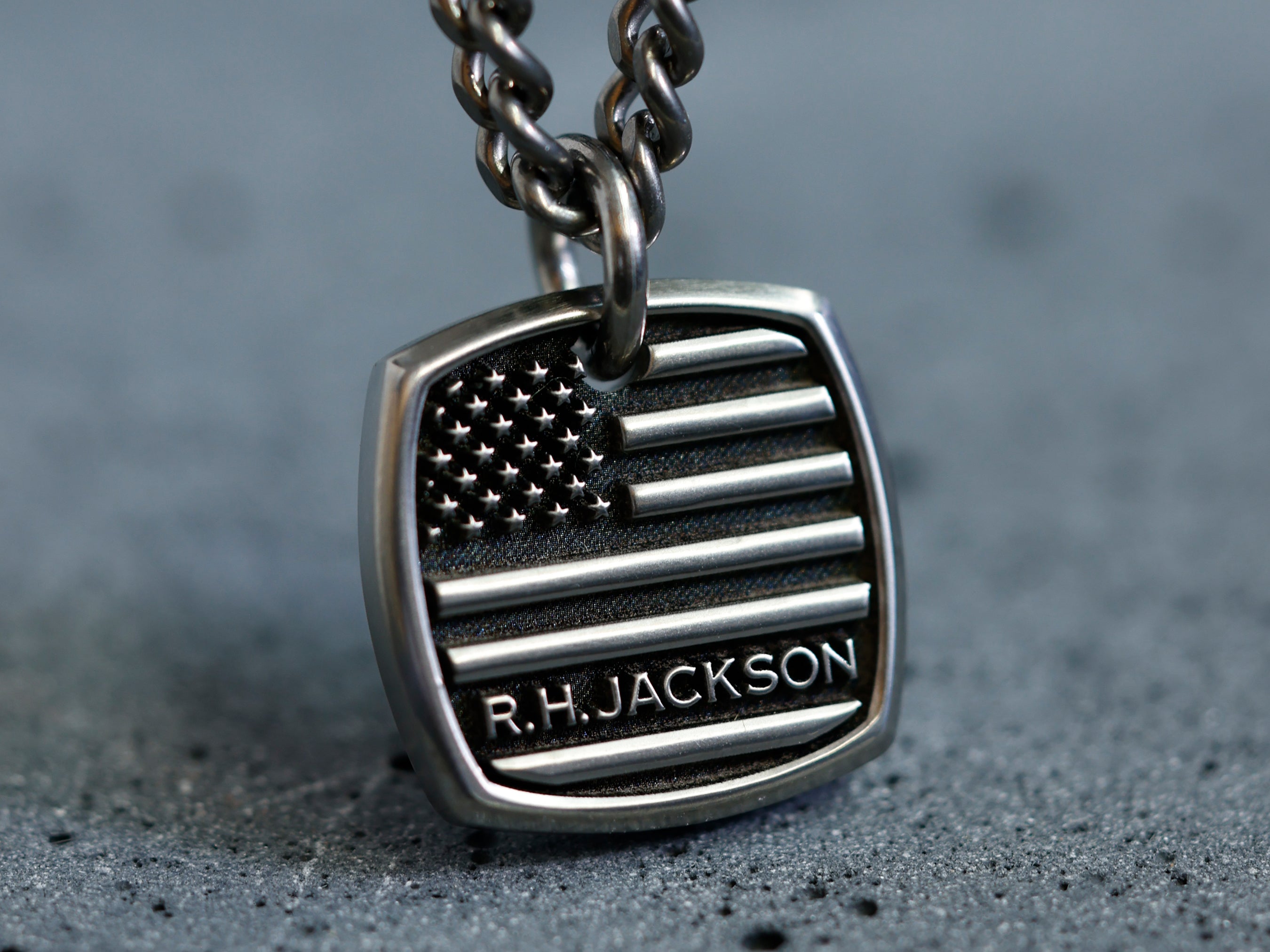 Stand proud. Our Custom Titanium USA Flag Pendant is a symbol of patriotism, loyalty, and the enduring spirit of freedom. Forged from solid Titanium, it’s built to honor your roots and reflect the values you carry every day—strength, courage, and resilience.