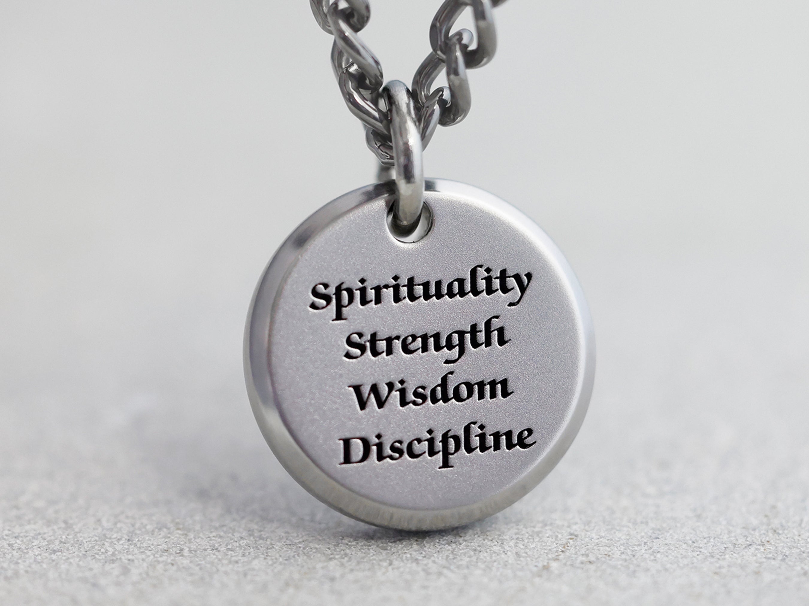 Artisan made from solid titanium, this pendant is built to last and made to carry something that matters. Each one is deeply engraved so your words don’t just sit on the surface—they’re part of the piece.
