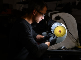 Each of our rings starts as a solid, raw stainless steel blank. They are roughly shaped and then deeply engraved. Our lettering is Deep engraved so the lettering will never wear off and looks fantastic! Each engraved ring is then hand-shaped,