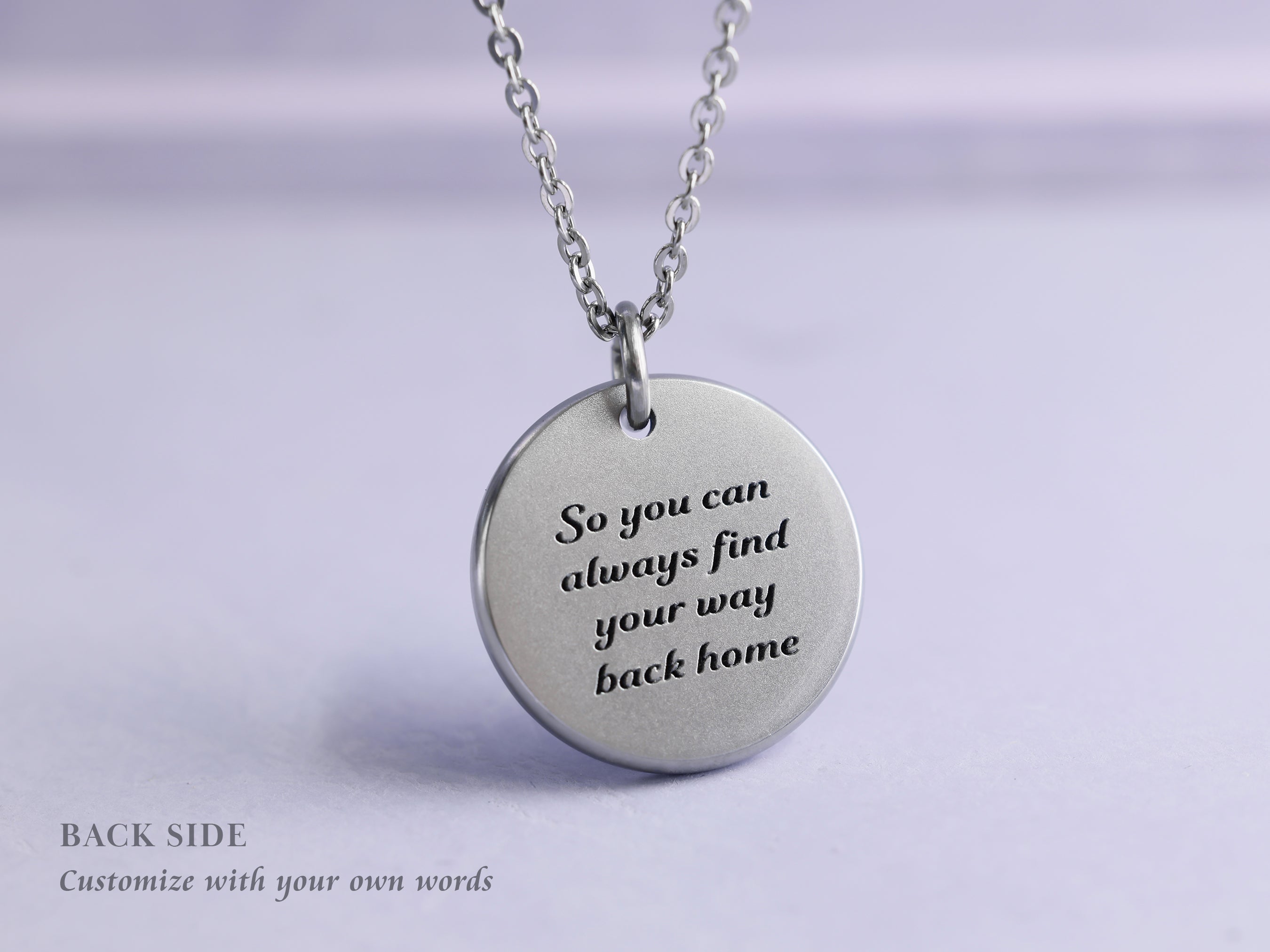 Personalize your necklace with the exact place a special life moment took place. For example, where your child was born, where you graduated, your hometown, or even a favorite vacation destination.